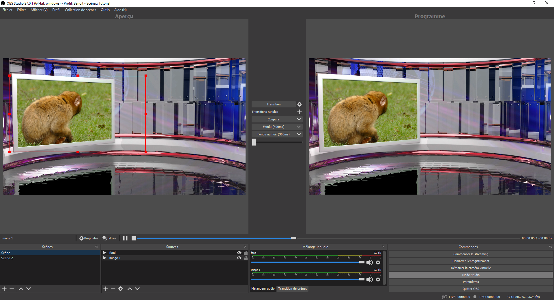 Dans OBS, vous avez la possibilité de créer différentes scènes. Dans chacune de ces scènes vous choisissez les sources que vous souhaitez voir apparaître : webcam, captures d'écran, images, textes... Ce paramétrage vous permettra de vous affranchir de tout travail de postproduction après l'enregistrement.